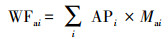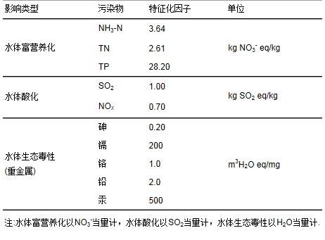 式中, WFai水酸化足跡(kg SO2 eq);APi為污染物i的酸化潛力系數, 按照SO2進行計算;Mai為污染物i的質量(kg).