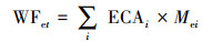式中, WFet為水體生態毒性足跡(m3 H2O eq);ECAi為污染物的水體生態毒性分類因子(即單位污染物造成水體生態毒性污染的水的體積);Mei為污染物i的質量(kg).