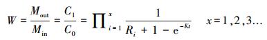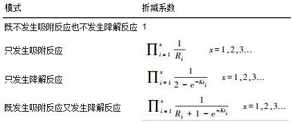 按照污染物本身的物理化學性質, 可將污染物在包氣帶中發生反應的類型分為4種模式:① 不發生吸附反應也不發生降解反應;② 只發生吸附反應;③ 只發生降解反應;④ 既發生吸附反應又發生降解反應.4種反應類型依次簡稱為模式1、模式2、模式3、模式4.結合包氣帶的巖性、厚度、顆粒大小, 量化出每一種污染物經過包氣帶后, 包氣帶對其的消減作用, 即“折減系數”.折減系數推導過程如下.