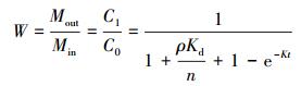 折減系數W的計算公式如式(5)所示, 而污染物的阻滯系數R=1+ρKd/n, 因此, 式(5)可以化簡得到式(6).