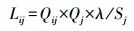 地下水受到污染源污染, 歸根結底表現為污染源排放的一定數量的特征污染物透過包氣帶, 對地下水環境造成破壞.進入含水層特征污染物的數量與污染源的排放數量有關, 而特征污染物對地下水環境的破壞則需考慮其自身屬性.污染物的遷移性與降解性等性質已經包含在污染源量化過程中, 這里考慮特征污染物的毒性, 參考DZ/T 0290-2015《地下水質量標準修訂》和GB5749-2006《生活飲用水衛生標準》.其中, 污染物濃度限值越大, 說明其毒性越小, 根據污染物濃度限值從大到小排序, 依次賦值.基礎污染風險的計算公式為: