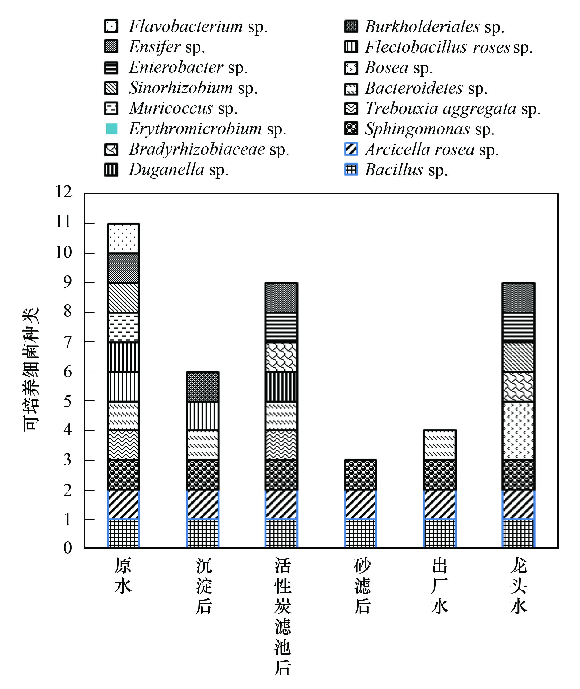 圖 1 凈水工藝對飲用水中可培養微生物多樣性的影響