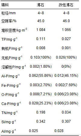填料截留磷素形態(tài)分布見表 8,其中其他指填料吸附的有機(jī)磷和截留在填料表面的顆粒磷,由于AlCl3溶液呈酸性,在改性過程中部分改性液未從填料表面及孔道內(nèi)完全洗凈使改性沸石濕地床體內(nèi)在啟動(dòng)初期呈弱酸性,因此生成了部分的閉蓄態(tài)磷[25].沸石改性前后,均以Ca-P為主要吸附沉淀磷素途徑,改性前后水溶性P和Fe-P截留量變化不大,可能與沸石中鐵質(zhì)含量不高有關(guān),而濕地Ca-P和Al-P截留量均有大幅提升,Ca-P增幅大于Al-P,因此Al3+入替至晶格不是改性沸石磷素吸附性能提升的唯一原因.沸石先后經(jīng)NaOH溶液和AlCl3溶液中的H+處理后,大量位于沸石內(nèi)部的無(wú)效鈣質(zhì)和鋁質(zhì)溶出并沉積在填料表面或入替表面晶格中的Si4+,大量吸附沉淀在天然沸石表面的磷素解吸出來(lái),均增強(qiáng)了沸石的磷素吸附性能,而酸堿還能疏通拓寬沸石孔道,增大其孔容積及吸附點(diǎn)位,增大Al3+入替至晶格中的可能性.在這些途徑的協(xié)同作用下,改性沸石中Ca和Al成分對(duì)磷素的吸附沉淀能力大幅提升.