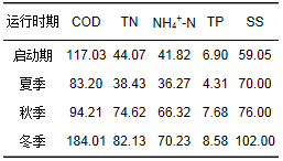 表 2 不同運(yùn)行時(shí)期BFCWs平均進(jìn)水水質(zhì)