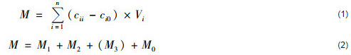 式中,M為中試運(yùn)行期間濕地對(duì)污水中氮磷的轉(zhuǎn)移去除總量,g;M1為中試運(yùn)行期間濕地植物對(duì)污水中氮磷的吸收量,包括菖蒲和美人蕉的全氮全磷增量,g;M2為中試運(yùn)行期間濕地填料對(duì)污水中氮磷的截留量,其中,M2N和M2P分別為填料對(duì)氮素和磷素的截留量,g;M3為中試運(yùn)行期間濕地微生物硝化作用脫氮量,g;M0為中試運(yùn)行期間濕地通過其他方式對(duì)污水中氮磷的轉(zhuǎn)移去除量,g. cii為第i天濕地進(jìn)水氮磷質(zhì)量濃度,g·m-3;ci0為第i天出水氮磷質(zhì)量濃度,g·m-3;Vi為第i天處理廢水體積,m3;n為中試運(yùn)行天數(shù),d;τ和∂分別為菖蒲和美人蕉的各個(gè)器官,菖蒲共3個(gè)器官,美人蕉共4個(gè)器官;Zτ和Z∂分別為菖蒲和美人蕉各器官單位質(zhì)量的氮磷含量,g·kg-1;mτ和m∂分別為菖蒲和美人蕉各器官濕重,kg;Wτ和W∂分別為菖蒲和美人蕉各器官含水率,%;N和P為中試運(yùn)行結(jié)束后單位質(zhì)量填料的平均全氮全磷量,g·kg-1;N0和P0為填料全氮全磷背景值,g·kg-1;Pη為單位質(zhì)量填料截留的第η種磷素形態(tài)質(zhì)量,填料全磷由有機(jī)磷、水溶性磷、Al-P、Fe-P、O-P和Ca-P這6種磷素形態(tài)構(gòu)成,g·kg-1;ε為中試運(yùn)行期間經(jīng)過的各個(gè)時(shí)期(啟動(dòng)期和夏、秋、冬3季,共4個(gè)階段);rε為某一時(shí)期濕地的平均硝化反應(yīng)強(qiáng)度,g·(kg·d)-1;tε為某一時(shí)期天數(shù),d;rδ為濕地填料層第δ段平均硝化反應(yīng)強(qiáng)度,將濕地填料層平均分為前中后和上中下共9段,g·(kg·d)-1;ms為濕地填料層填料質(zhì)量,kg;ρb為濕地填料層填料堆積密度,kg·m-3;V為濕地填料層體積.