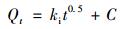 式中,Qe和Qt分別表示Cr (Ⅵ)平衡時刻吸附量和t時刻吸附量(mg·g-1);K1、K2、ki表示各自模型的反應速率常數;C為常數.