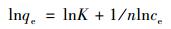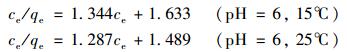 式中,qe代表吸附劑的吸附量(mg·g-1);b是Langmiur常數,代表吸附劑施氏礦物與Cr (Ⅵ)的結合能力,ce為平衡時的溶液Cr (Ⅵ)濃度(mg·L-1),K是Freundlich常數,1/n反映吸附的非線性度,其值越大則表示吸附能力越弱.