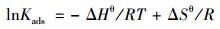 通過考察15℃、25℃時溫度對施氏礦物吸附Cr (Ⅵ)的吸附等溫線(見圖 6),結果表明實驗溫度范圍內,吸附量隨溫度升高而升高,表明施氏礦物吸附Cr (Ⅵ)是一個吸熱過程.依據吉布斯方程計算溫度對吸附平衡常數的影響:
