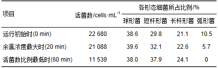 表 2 水循環(huán)中不同時(shí)刻各形態(tài)細(xì)菌所占比例