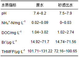 表 1 原水及砂濾出水水質(zhì)指標(biāo)