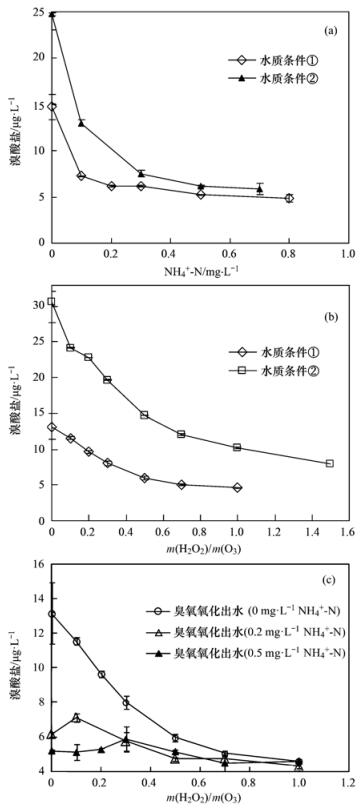 圖 5 氨氮及過氧化氫投加對(duì)溴酸鹽控制效果