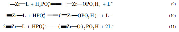 (6) 沉淀pH值為4.8和8.0時所得水合氧化鋯的吸磷機制主要是表面氯和羥基基團與磷酸鹽之間的配位體交換作用,而沉淀pH值為10.6時所得水合氧化鋯的吸磷機制主要是表面羥基基團與磷酸鹽之間的配位體交換作用.
