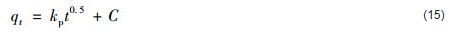 式中,qt為t時間內的吸附量,mg ·g-1;qe為平衡吸附量,mg ·g-1;t為吸附時間,min;k1為準一級動力學模型吸附速率常數,min-1;k2為準二級動力學模型吸附速率常數,g ·(mg ·min)-1;kp為內擴散速率常數,mg ·g-1 ·min-0.5;C為方程在Y軸上的截距.