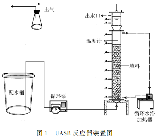 2 個(gè)厭氧氨氧化 UASB 系統(tǒng)( R1 和 R2 )如圖 1所示。 反應(yīng)器外徑為 14 cm,內(nèi)徑 10 cm,有效體積均為 8. 8 L。 反應(yīng)器外設(shè)保溫層,并控制進(jìn)水 pH 在7. 2 ~ 7. 8。 R1 添加的填料為載活性炭基 K3 填料,R2 添加的是普通 K3 填料,填料的直徑 25 mm,高 10mm,比表面積為 620 m2·m - 3,2 反應(yīng)器內(nèi)部添加的填料約占其有效體積的 62% ,活性炭購(gòu)自河南佰誠(chéng)水處理材料有限公司,球狀,研磨成粉末狀使用。
