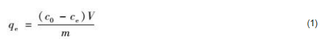 式中, qe為鋯改性膨潤土對水中磷酸鹽的單位吸附量(以P計, mg·g-1); c0和ce分別是溶液中初始時刻和平衡時刻的磷質量濃度(mg·L-1); V為溶液的體積(L); m為投加的鋯改性膨潤土質量(g).
