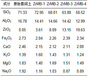 表 1 原始膨潤土和不同鋯負載量鋯改性膨潤土的化學元素組成/%