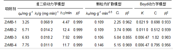 表 2 動力學模型對鋯改性膨潤土吸附水中磷酸鹽動力學過程的擬合結果