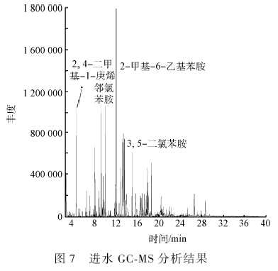 3)GC-MS 結果表明,多相催化臭氧氧化技術可完全去除廢水中苯胺類、酚類和硝基苯類有毒污染物。