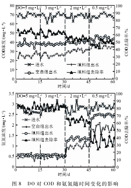 2. 2. 3 DO對空心球掛膜及凈化效果的影響