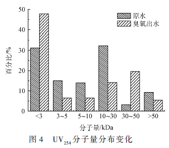 2. 1. 2 臭氧預氧化前后有機物分子量及UV254 分布變化