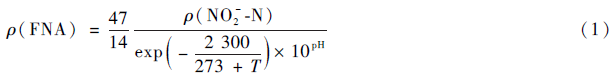 式中: ρ(FNA) 是FNA 濃度,mg·L - 1 ;T 為溫度,℃ 。