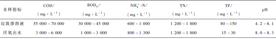 實驗用水為垃圾焚燒滲瀝液經EGSB 處理后的厭氧出水,水質特征見表1。