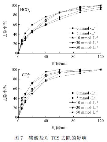 2. 2. 4 碳酸鹽( HCO3- 、CO3^2- ) 對(duì)TCS 去除的影響