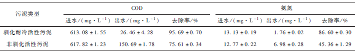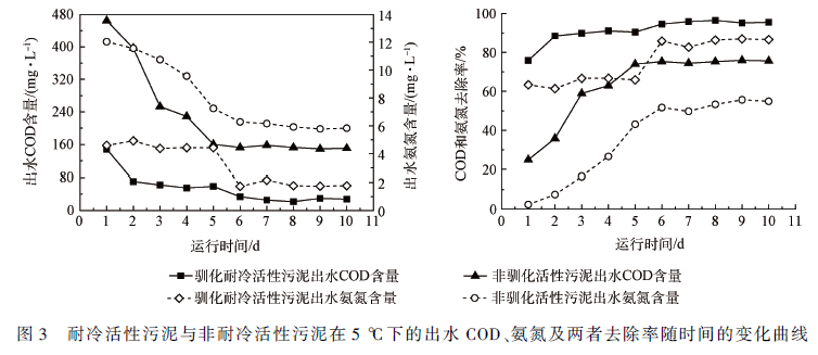 2. 4 馴化后的耐冷活性污泥與非耐冷活性污泥在低溫下污水處理能力的比較