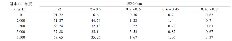 表 2 厭氧顆粒污泥粒徑分布(質量分數)/%