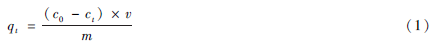 Cr(Ⅵ)吸附量計算公式如下: