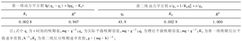 實驗中所有處理均設(shè)置3個平行樣,數(shù)據(jù)結(jié)果均為平均值士標準偏差。采用Langergren準一級、準二級動力學(xué)模型,Langmuir 、 Freundlich等溫吸附模型進行擬合,使用Excel 2010 、 Origin 8. 5軟件進行數(shù)據(jù)處理與分析。