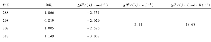 式中:R為常數(shù)8. 314 J · ( mol · K)-1;T為絕對溫度;K為某一溫度下的平衡常數(shù)(K = qe / Ge ) 。