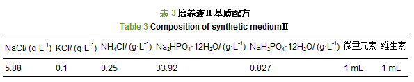 培養液Ⅰ和培養液Ⅱ基質配方如表 2和表 3所示,調節培養液ⅠpH為7.0±0.5水平,培養液ⅡpH為8.0±0.5水平.