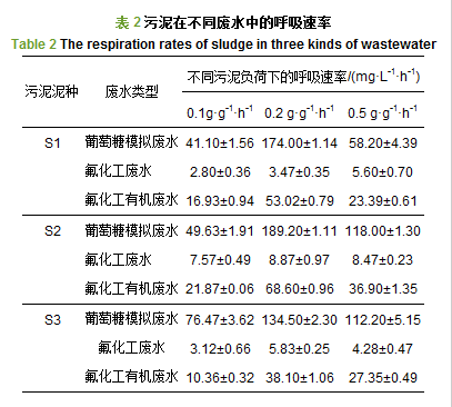 1) Strathtox呼吸速率儀測定結果表明, 3種污泥在氟化工原始廢水中的呼吸速率受到明顯抑制, 氟化工原始廢水的可生化性極低;但在氟化工有機廢水中, 污泥的呼吸速率顯著提升, 大大增加了氟化工有機廢水的可生化性.