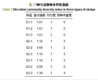 3.2.3 不同活性污泥中微生物香濃指數多樣性分析