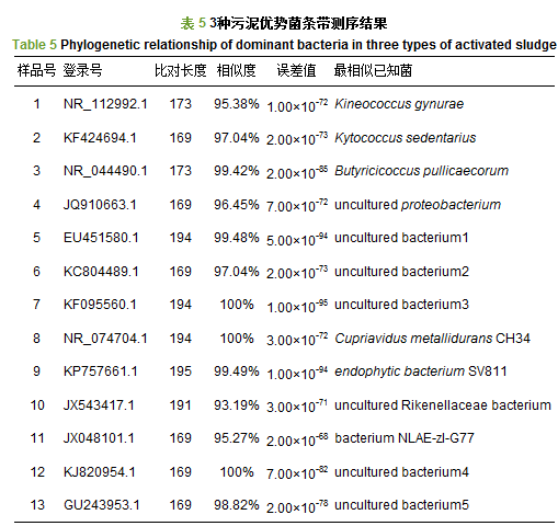 3.2.4 不同活性污泥中優勢菌種的鑒定
