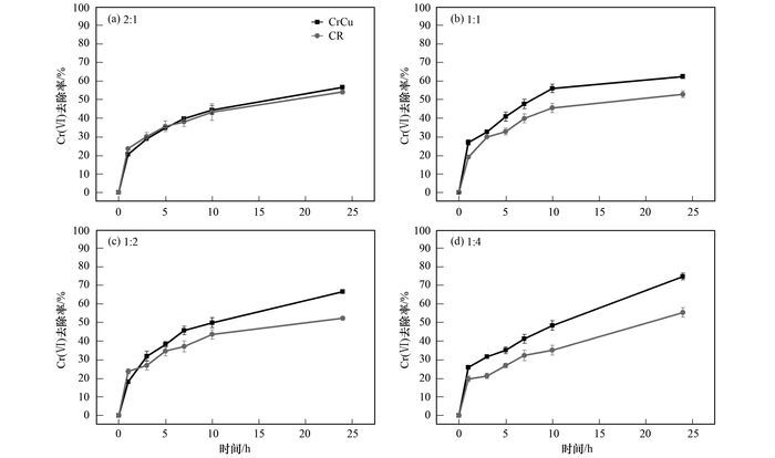 Cr(Ⅵ)/Cu(Ⅱ)復配濃度比為2:1、1:1、1:2、1:4