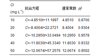 圖 6為不同濃度條件下鐮刀菌降解TCP的動力學擬合曲線. 由圖 6可知,在不同濃度條件下,TCP濃度均隨著降解時間的增加而不斷降低,濃度與降解時間呈較好的線性關系,R2維持在0.87~0.95范圍內(表 1),說明鐮刀菌對TCP的降解符合零級降解動力學方程.
