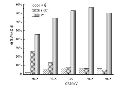 1) 通過控制反應體系氧化還原電位(ORP)可以控制氧化反應進程, 使單質硫成為主要氧化產物, 其收率隨反應體系ORP值的升高先增大后減小, 在ORP為(30±5)mV時達到最大值76.35%;當ORP由(-50±5)mV升高至(50±5)mV時, 副產物S2O32-收率顯著下降, 由26.54%降低至5.32%.