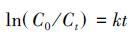 污染物降解動力學(xué)采用一級反應(yīng)動力學(xué)方程(1)進行擬合,得到污染物去除的反應(yīng)速率常數(shù).