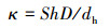 式中,D是溶質的擴散系數(m2·s-1);dh是水力直徑(m);Sh舍伍德數由公式(5)(6)獲得:
