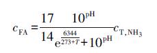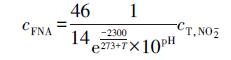 水溶液中, 游離氨(FA)及游離亞硝酸(FNA)濃度分別由公式(1) 和(2) 計算.