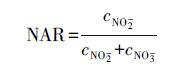 亞硝態(tài)氮積累率(nitrite accumulation rate, NAR)由公式(3) (陳曉軒等, 2012)計算: