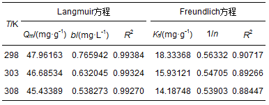 表 1 不同溫度下的Langmuir和Freundlich模型參數