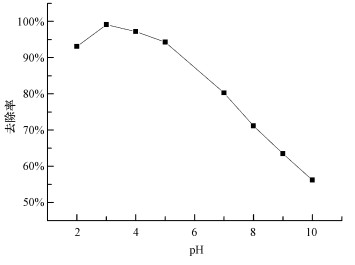 圖 4 pH值對活性紅X-3B去除率的影響