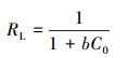 利用分離因數(RL)進一步分析Langmuir吸附模型, 由公式(4)計算分離系數.在實驗濃度范圍內0 < RL < 1, 表明吸附為優惠吸附.