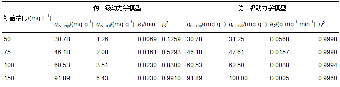 表 1 GEC吸附CR的吸附動力學參數