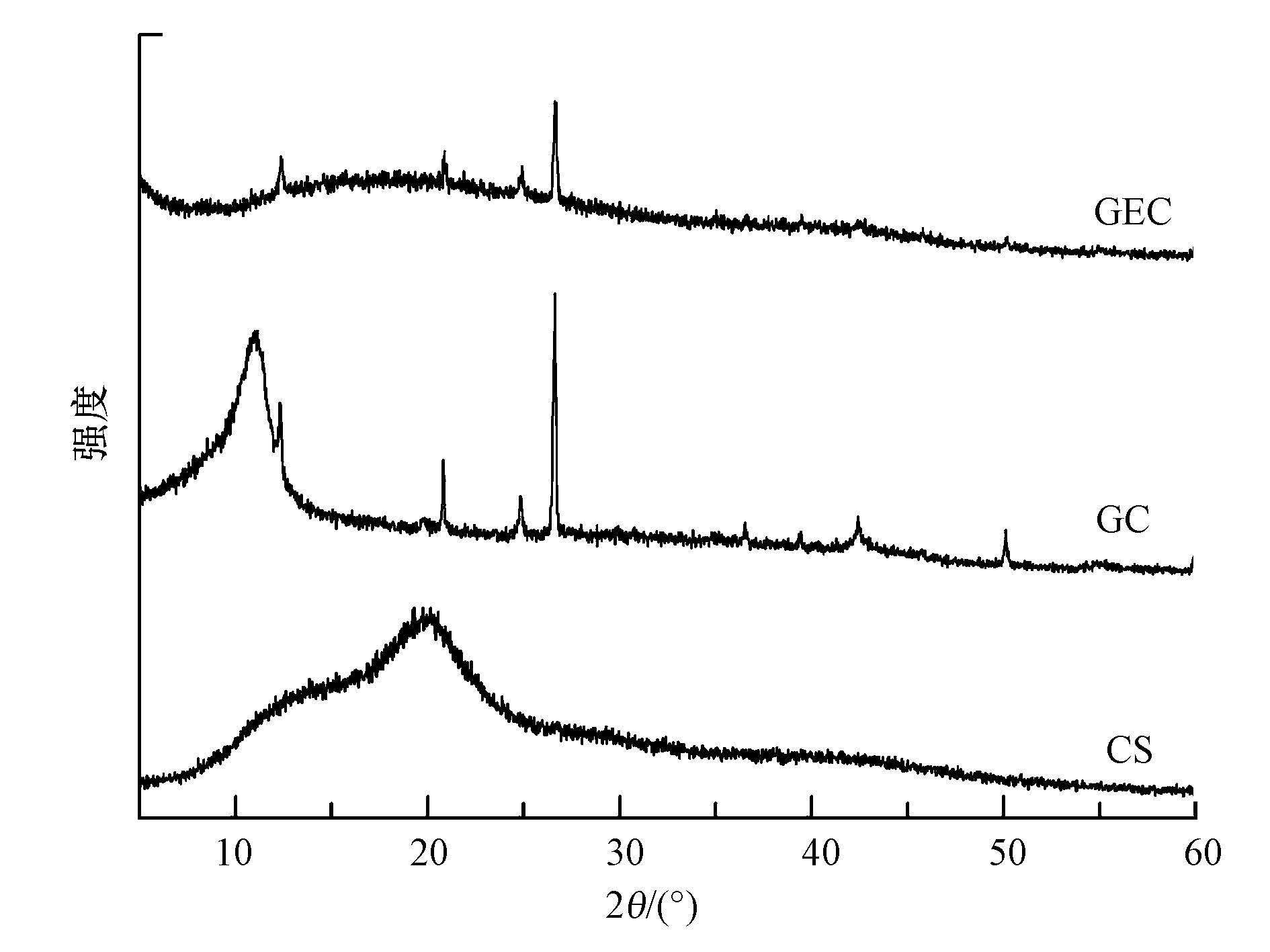 圖 3 CS、GC和GEC的XRD 衍射圖譜