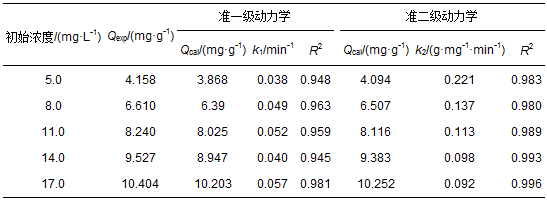 表 1 不同初始濃度下鹽酸四環(huán)素的吸附動力學(xué)參數(shù)