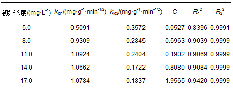 表 2 不同初始濃度顆粒內(nèi)擴(kuò)散模型擬合結(jié)果